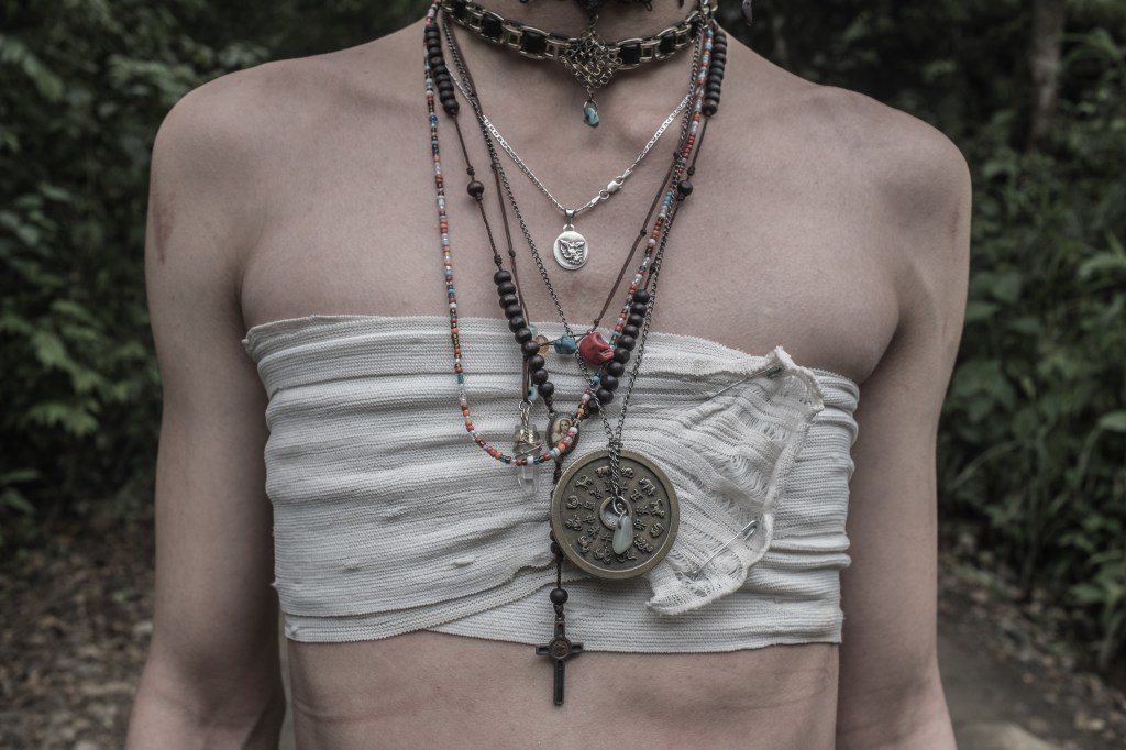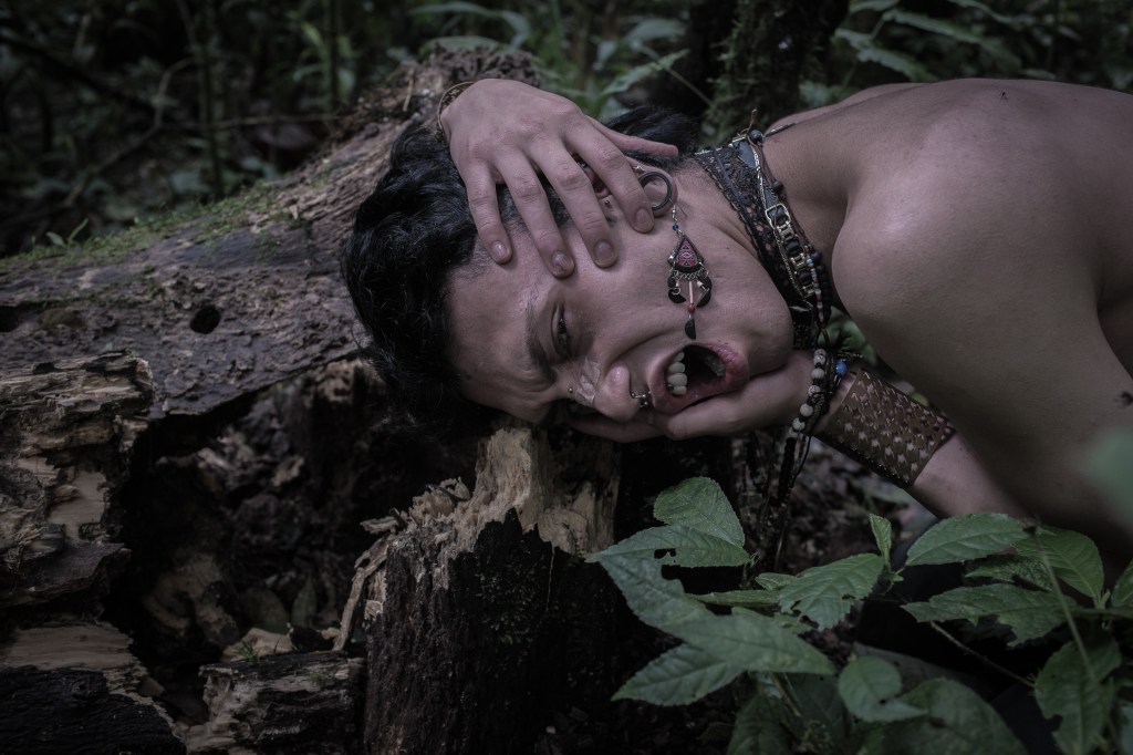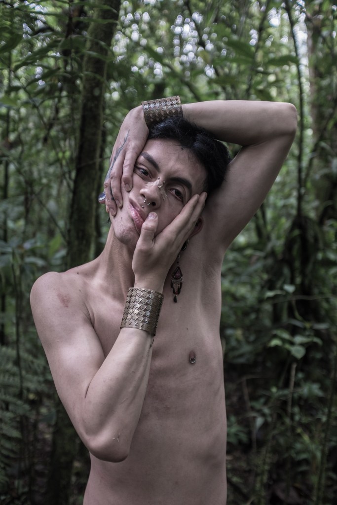 Esta secuencias de fotos muestran un cuerpo masculino, que habla de otras masculinidades. Un cuerpo fragil, débil, adornado, y agresivo contra las formas de constituir, de nombrar el cuerpo, de poderlo presentar. Es un ejercicio hecho en la Reserva del Otún Quimbaya, en Risaralda. Leonel se ofrece a participar del proyecto de pitchfotos y se siente honrado de poder seguir existencia desde la re-existencia de nombrar otras maneras de ser masculino.