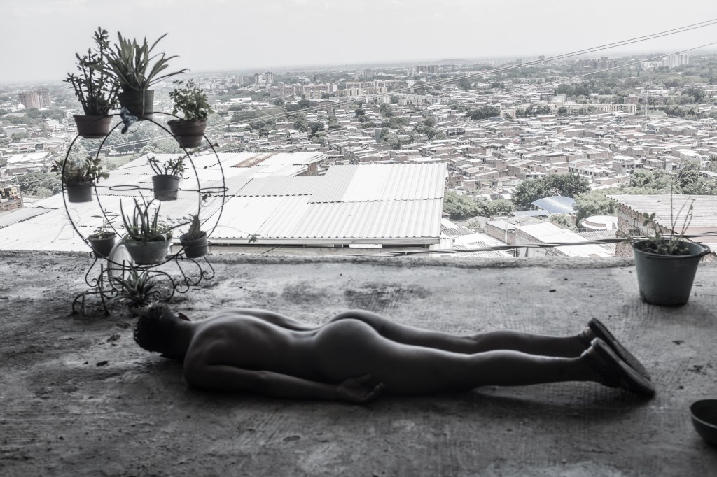 En este ejercicio de fotografía abordo los cuerpos de hombres, pero que insinúan posturas y lugares que ponen en entredicho las sexualidiades hegemónicas. Uno de los temas que se vuelve reiterado es el de las nalgas y el culo. Uno de los sitios de mayor control social, y donde se pone en juego una cantidad de valores de ser activo o pasivo, de ser dominante o ser dominado, de ser masculino o femenino. Evidentemente al poder jugar con las nalgas grandes, está en juego el énfasis que hay en otros lugares del cuerpo como los brazos grandes o el pecho. Esas nalgas grandes parecieran ser una provocación, un síntoma de feminización que ayuda a crear el argumento metafórico asociado al deseo de ser poseido.