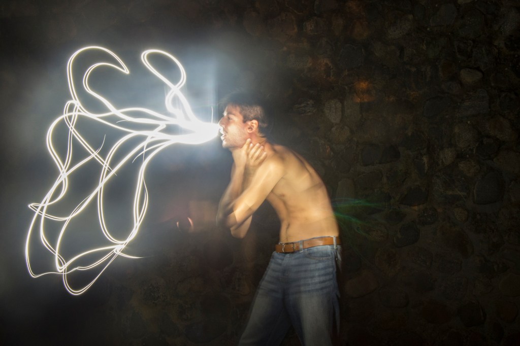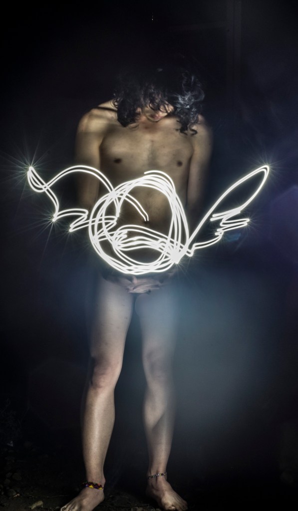 Con esta técnica de light Paiting solo necesito una cámara y un celular con el que pinto el objeto o la persona a retratar. Dependiendo del sitio y la hora, las exposiciones pueden llegar a durar hasta unos 30 segundos. El efecto es magnífico, pues se logra una textura y un color increibles.