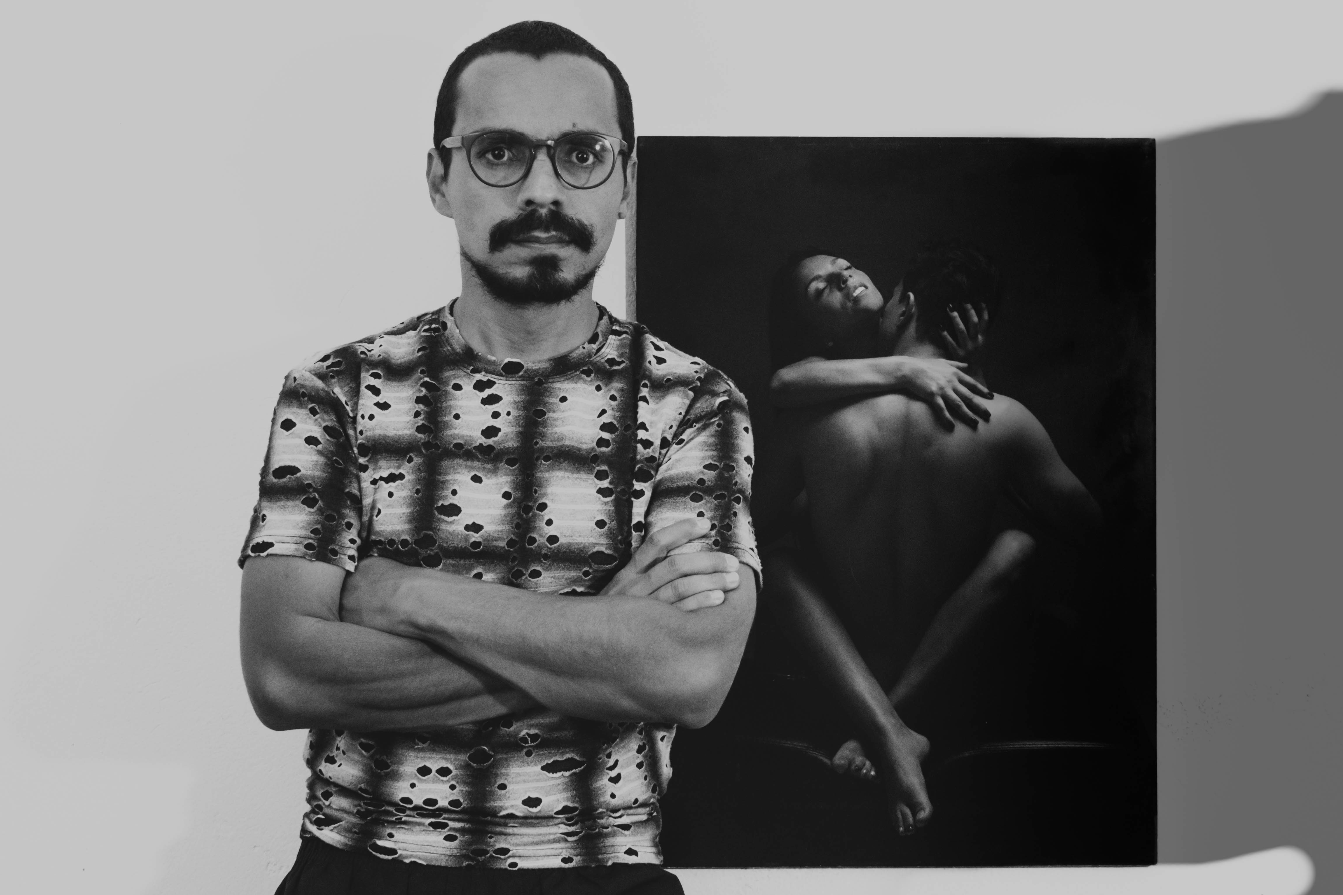 Mi trabajo es una expresión visceral del homoerotismo. La interpretación a la que puede llegar depende del tabú, del prejuicio, y del sometimiento social al que ha sido expuesto el espectador. En caso de no tener ninguno de estos estigmas, mi trabajo será una expresión que puede convertirse en fuente de inspiración o de rechazo. Nombre: Para mis amantes 4 piezas de 33cmx48cm aprox. 1 pieza de 48cmx66cm aprox. Blanco y negro Las imágenes enviadas pueden estar sujetas a cambio. Previamente informado.