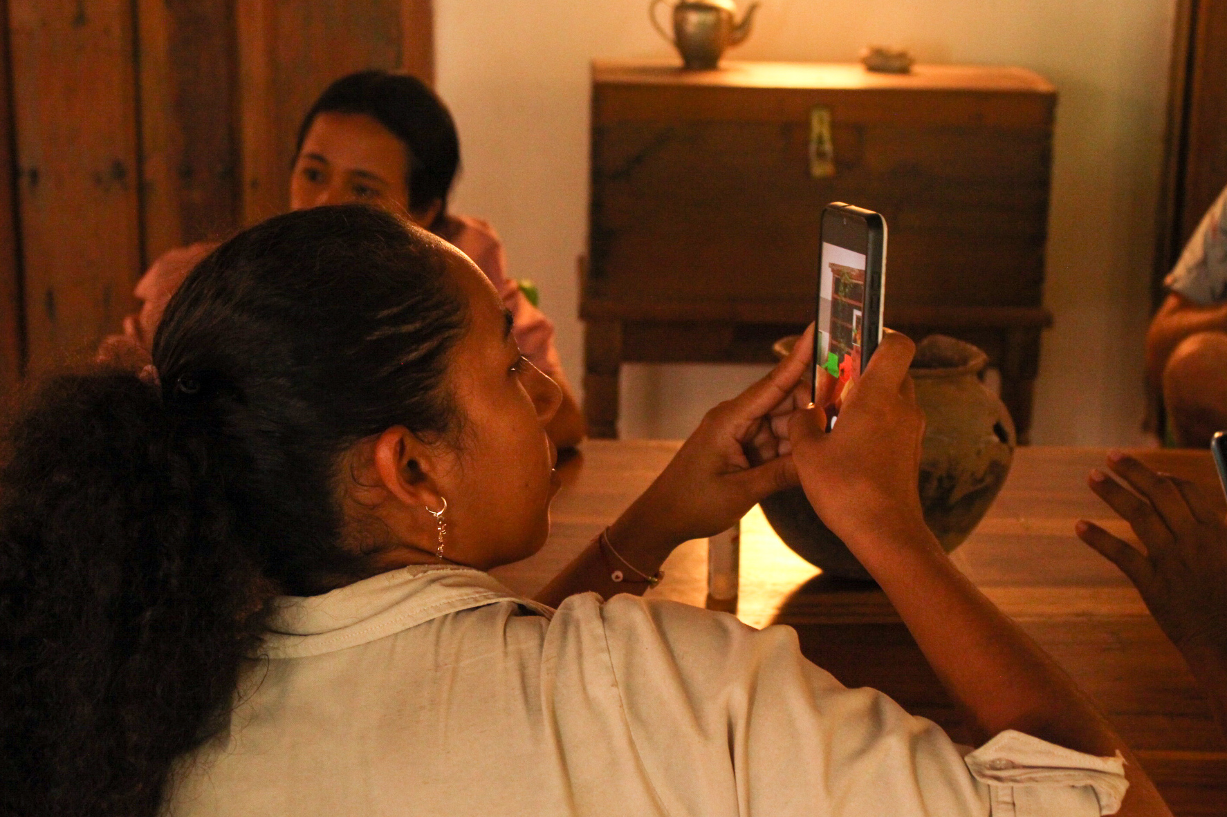 Tuve la oportunidad de realizar dos talleres. El primero se llamó taller de fotografía con celular. La convocatoria se hizo a través de redes sociales y de los grupos de whatsapp. En el taller participaron 12 personas, especialmente mujeres. El taller giró en torno al lenguaje de la fotografía, y la técnica en el uso de las herramientas del celular y la app Snapseed. La evaluación del taller fue muy positiva.