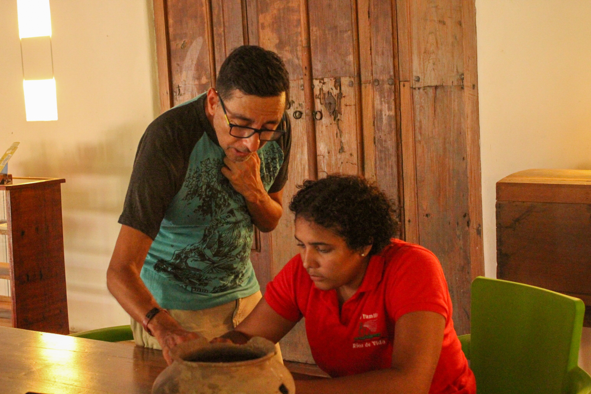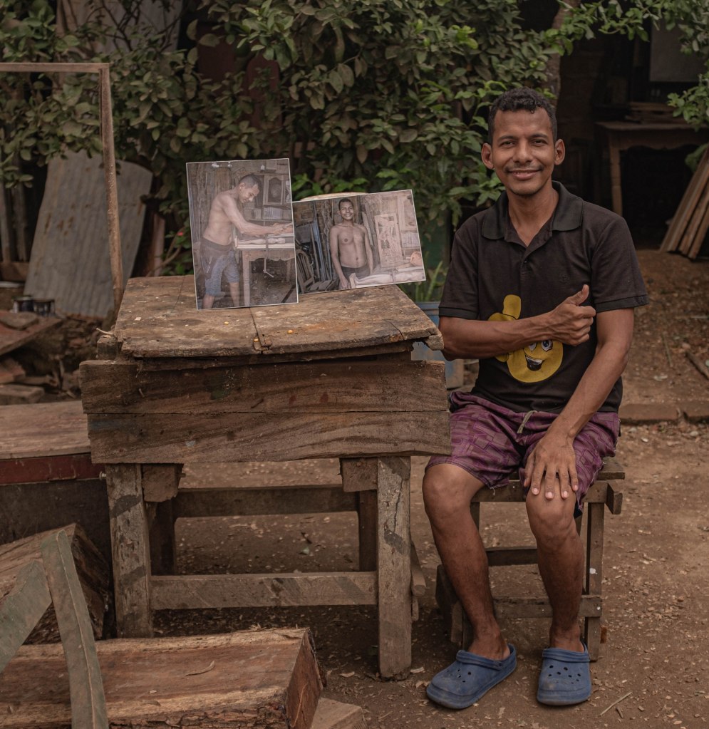 Conocí a José Carlos. Un chico de 27 años. Es hijo de una familia de artesanos talladores de madera. Al parecer cuando era bebé sufrió un accidente en una moto que le afectó su capacidad de escucha, lo que le afectó posteriormente su posibilidad de habla. Junto con su mamá se inventaron un lenguaje de señas que le permite comunicarse, dado que en los colegios no hay profesores capacitados para enseñarles la lengua de señas colombiana. Me interesó su historia por su condición física que le ha impedido tener una vida «normal» en una especie de capacitismo que lo segregó a su taller. José Carlos es víctima de una forma de de discriminación, al no tener las posibilidades funcionales de los demás cuerpos.