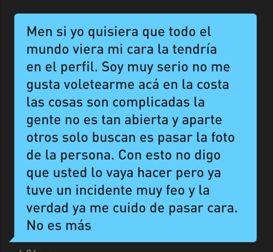 Respuesta de uno de los usuarios de Grindr cuando le pedí foto del Rostro.