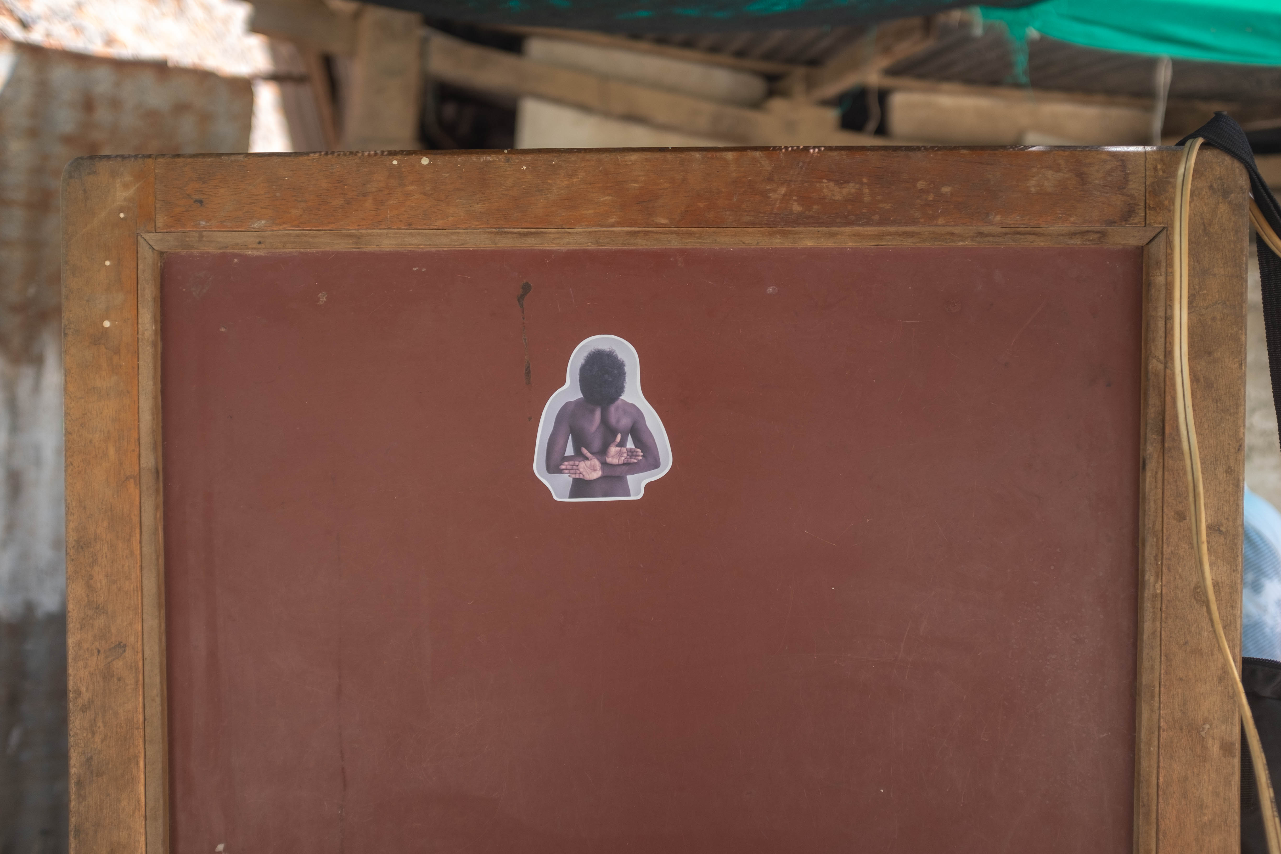 Una de las intervenciones que hice fue pegar algunos stikers de hombres desnudos realizados a partir de mi trabajo de fotografía en algunos sitios del pueblo y en la parte de atrás de algunos celulares. Esta intervención le permitió a algunas personas hacerse la pregunta sobre cuales serían los retos sobre la reflexión de la masculinidad en la región.