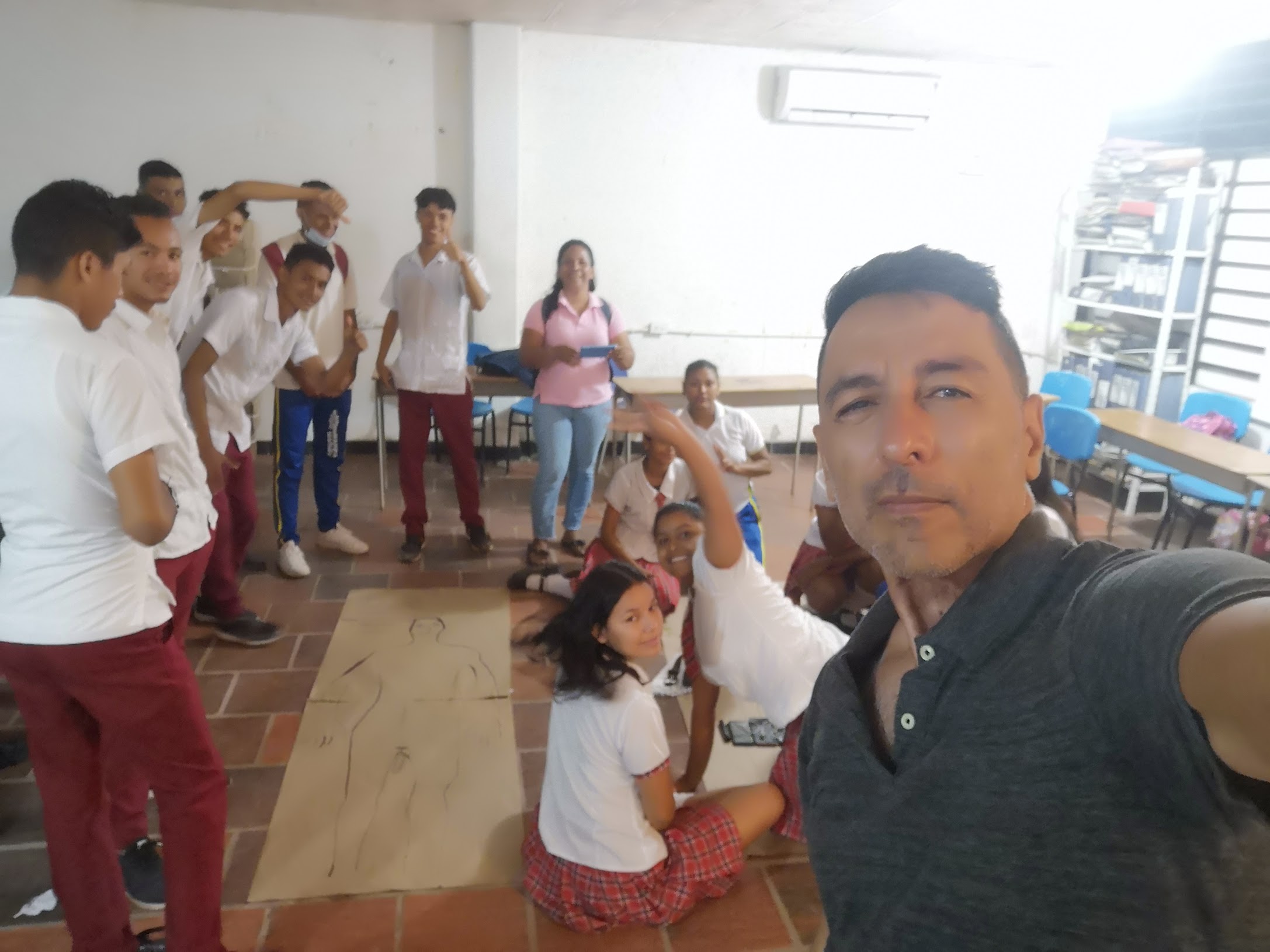 Mi llegada al colegio fue una sensación. Era la primer vez que veían a una persona con traqueostomía, que para hablar tiene que undirse el filtro que tiene en la garganta. Era como ver un cyborg en persona. Tuve la oportunidad de hacer el taller con 23 estudiantes del grupo 11. Lo llamé «taller Masculinidades y de fotografía». En el taller abordé definiciones de sexo-Sexualidad-orientación sexual-género, partiendo de los imaginarios de los chicos en la vida cotidiana. Después de un ejercicio de hipertextualidad nos acercamos al lenguaje y la técnica de fotografía con celular. La experiencia fué muy bien valorada, después de reconocer que en el colegio no habían recibido una charla sobre estos temas, en un contexto donde los chicos tienen hijos a muy temprana edad.
